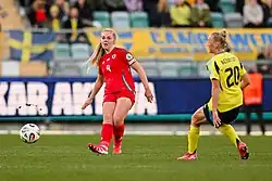 ![]() Mayzee Davies playing for Cymru against Sweden 4 April 2025 | |||