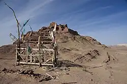 Mazar Tagh was part of the ancient Kingdom of Khotan during the first millennium AD. Before the Tibetan army built a fort there, it seems to have been a Buddhist pilgrimage site known locally as "the Hill".[2] During the Tibetan Empire, the fort at Mazar Tagh was the main Tibetan military outpost for the Khotan region, performing a similar role to the Tibetan fort at Miran. During the Tibetan occupation, Mazar Tagh, like Miran, was home not only to soldiers but also to their families, civilian officials, and merchants.[3] Aurel Stein wrote of the presence of an Islamic shrine on the hill at the time of his first visit in 1907, and noted modern Turkic name Mazar Tagh means "Hill of the Sacred Shrine".[4] The hill still contains a functioning Islamic shrine (Mazar).