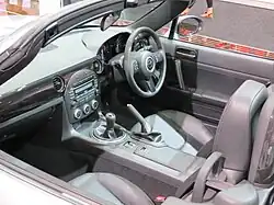A 6-speed automatic transmission, with steering wheel-mounted paddle shifters, was optional.[8] A test by Car and Driver magazine revealed a 0-97 km/h (60 mph) time of 6.5 s for the 2.0 L (120 cu in) U.S.-spec NC.[9] Manufacturer figures for the European-spec model are: 0-100 km/h (62 mph) in 9.4 s for the 1.8 and 7.9 s for the 2.0. As of this generation, the car no longer complies with Japanese law's maximum exterior width dimension for the mid-size vehicle tax class, making Japanese buyers liable for additional costs for ownership.