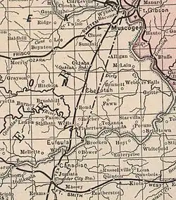 The McIntosh County Seat War was a dispute in Oklahoma over the location of the McIntosh County seat that took place between 1907 and 1909. Following a pair of elections that resulted in the town of Checotah being designated as the new county seat, the people of Eufaula refused to hand over the county records. As a result, a group of heavily armed men from Checotah attempted to seize the records, but were forced to surrender during the gunbattle that ensued. One year later, after another close election, Eufaula became the permanent county seat.[1][2]