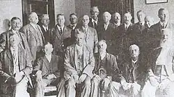 The first deputy US marshals to serve in the Northern District of the Indian Territory, including Frank Jones (standing, 10th from left) and Grant Johnson (sitting, 3rd from left) in 1897.