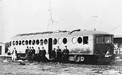 The McKeen Railmotor was a 6-cylinder self-propelled railcar or railmotor. When McKeen Company of Omaha, Nebraska, U.S.A., first unveiled the car in 1905, the McKeen was among the first engines with a distillate-fueled motor.[1] Revisions to the McKeen car led to the modern self-propelled gasoline rail-motor vehicle, and the "contours of the porthole windows, the front-mounted gasoline engines, and other features anticipated the streamline concept."[2]