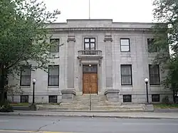 Richardson retired in 1921 after a disabling accident and Fenner died in 1926. Teunis Jacob van der Bent (1862 – 1936), a partner since 1909, took over Fenner's management role and died a decade later. Kendall gradually withdrew from the firm during the 1930s and died in 1941, leaving control of the firm with White and Smith.[27] The firm's design efforts after World War II may be summed up by the Mead Art Building (1949) of Amherst College, a memorial to Mead. Mead and his wife had left a large sum of money to Amherst, his alma mater, for the construction of an art gallery.[28][29] The new building was assigned to Smith, who was college architect and another alumnus. According to Blair Kamin, at this point Smith and his firm "were struggling with the challenge[s] posed by...modernism," resulting in a building which attempts gamely to meld Beaux-Arts and modernist principles but fails at both.[30] Shortly before White's death in 1956, he won for the firm the National Museum of American History (1964) in Washington, DC. His grandson, architect Samuel White, described the commission as "[h]is personal Mount Everest."[31] The museum, among the final works initiated under the name McKim, Mead & White, was designed principally by Smith and Walker O. Cain. Here as at Amherst they attempted to meld traditionalism and modernism with little success. Martin Moeller, then curator of the National Building Museum, described it as "neither convincingly modern nor credibly neoclassical."[32]