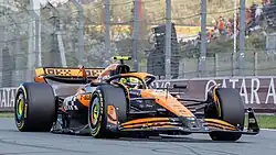 In the car's early races it exhibited strong performance in medium- and high-speed corners and proved a significant improvement over the early-season MCL60.[167][168][48] It also displayed a lack of top speed, an inefficient drag reduction system, and poor performance in longer corners.[167][168] Compared to its nearest competitor – Ferrari's SF-24 – the MCL38 lacked race pace largely due to the SF-24's superior tyre management, but excelled over a qualifying lap.[48] The MCL38 proved to be the overall third-fastest car early in the season.[169][170]