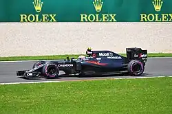The McLaren MP4-31 is a Formula One racing car designed by McLaren to compete in the 2016 Formula One season. The car was driven by 2005 and 2006 World Drivers' Champion Fernando Alonso and 2009 World Champion Jenson Button, and reserve driver Stoffel Vandoorne, who replaced Alonso at the Bahrain Grand Prix following the Spaniard's accident at the Australian Grand Prix which deemed him unfit for the next event.[2]