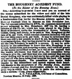 - ^ Vallance, A.C. (14 February 1887). "The Houghney Accident Fund". Glasgow Evening Post: 3.