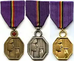 | Medal of Belgian gratitude in gold, silver and bronze, with and without red enamel cross |