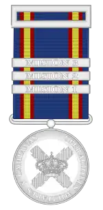 The Campaign Medal (Spanish: Medalla de Campaña ) is a Spanish permanent military decoration. The medal is awarded to members of the Spanish Armed Forces, Allied forces and civilians participating in foreign military campaigns without international military decorations. It was created on 25 May 2018.