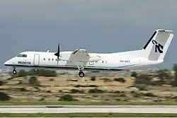 In late December 2012, two Medavia officials were detained in Libya in the wake of the Libyan civil war over allegations that they supported the Gaddafi regime. The allegations conflicted with other claims that they had actively supported anti-Gaddafi rebels instead, and many Libyan expats in Malta protested the detentions.[2] The officials were ultimately released without charges in the first week of 2013.[3] Medavia flights served as evacuation channels for Maltese nationals and injured people in the weeks following the commencement of the battle.[4] Medavia was the only airline with flights from Libya direct to Europe, after plans for Libyan airline Ghadames Air Transport to begin Libya-Malta routes fell through.[5] In 2014, a Medavia aircraft was damaged by unrest in Tripoli, which coalesced in the Battle of Tripoli Airport.[6] In February 2021, Medavia was rebranded Mel Air[7]