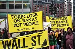 The Occupy Wall Street movement, which began during the fall of 2011, is another instance were social media largely contributed to the efforts of the initiative. It was a people powered movement beginning September 17, 2011 in Liberty Square in Manhattans financial district. As Occupy Wall Street sprang up in parks and under tents, one of the main issues the protesters pushed was economic inequality. Then with the winter pressing forward the police swept the protesters away. All across the country the crowds began to thin and enthusiasm diminished, and eventually the movement all but dissolved. The catch phrase that became well known by the occupants was "We are the 99 percent." The 99 percent were referred to as the lower-income people that are struggling to make a change. This was in contrast to the 1% who were well off financially and were in control of social, political and economic levers of powers.[1] From here it spread to cities all over the United States, and globally.[2] The movement came about because of the popular uprisings in Tunisia and Egypt. Its main goal was to fight against the unequal income gap and the corrupting influence of money. Although many people believed that the movement disappeared, it has instead evolved into a variety of different causes. One of Occupies largest unrecognized victories is the drive for a higher minimum wage. The occupy protests helped to motivate workers in the fast food industry in New York City to walk off their jobs in November, 2012, triggering national movement to raise the minimum wage to $15 an hour. This march in New York helped lead the way for tens of thousands of workers who marched in hundreds of cities asking for better paying conditions. [3] Occupy Wall Street protesters capitalized on the tools of social media to spread awareness about the movement, to inform participants about organized meetings, rallies, and events, and to ultimately generate national news and mainstream media attention. Social media handles like Facebook and Twitter were used to bring people from all over to one place for an agreed upon cause. It started off with the small number of people who had the idea. Once the events, rallies and protests began, it gained the attention from mass media. This ultimately created a huge platform for the change these participants yearned for.[34]