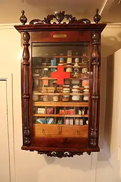 A medicine cabinet is a cabinet used to store medications and other hygiene products.[1] They are often locked and placed high enough such that it can not be accessed by small children. Medicine cabinets can be placed in many different places depending on the intended use and available space, and can for instance be found in workshops, bathrooms or hallways. Non-lockable bathroom cabinets are sometimes used as improvised medicine cabinets.
