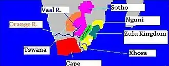 Southeast of the Drakensberg mountains lived Nguni-speaking peoples (Zulu, Xhosa, Swazi, and Ndebele). They too engaged in state building, with new states developing from rivalry, disagreements, and population pressure causing movement into new regions. This 19th-century process of warfare, state building and migration later became known as the Mfecane (Nguni) or Difaqane (Sotho). Its major catalyst was the consolidation of the Zulu Kingdom.[77] They were metalworkers, cultivators of millet, and cattle herders.[76]