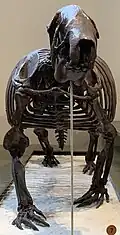 Megalocnus ("great sloth" in Greek) is a genus of extinct ground sloths that were native to Cuba during the Pleistocene and Holocene epochs. They were among the largest of the Caribbean sloths (Megalocnidae), with individuals estimated to have weighed up to 270 kg (595 lbs)[1] to 200 kg (440 lbs), around the size of a black bear when alive.[2] Its relatives include other megalocnid sloths, such as Acratocnus, Mesocnus, Miocnus, Neocnus and Parocnus.[3] The former species M. zile from Hispaniola is currently thought to be a junior synonym of Parocnus serus.[4]