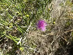 Melaleuca filifolia, commonly called wiry honey-myrtle,[2] is a plant in the myrtle family Myrtaceae, and is endemic to the south-west of Western Australia. It is a woody, twiggy shrub with needle-shaped leaves, greenish flower buds, pink "pom-pom" flower heads and spherical clusters of fruits.