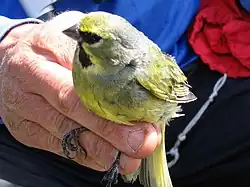 White-bridled finch or canary-winged finch | Melanodera melanodera | southern Argentina and Chile |