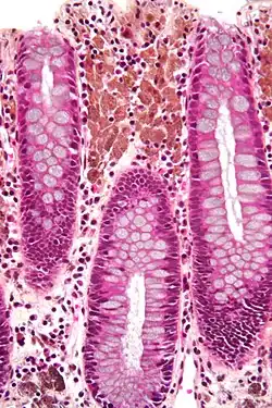- ^ Byers, R.J.; Marsh, P.; Parkinson, D.; Haboubi, N.Y (October 2003). "Melanosis coli is associated with an increase in colonic epithelial apoptosis and not with laxative use". Histopathology. 30 (2): 160–164. doi:10.1046/j.1365-2559.1997.d01-574.x. PMID 9067741. S2CID 3175917.