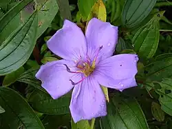 Melastoma is a genus in the family Melastomataceae. It has over 100 species distributed around Southeast Asia, India, north to Japan, south to Australia and the Pacific Islands.[1] The number of species should probably be reduced according to some sources.[2] Many species have been planted around the world for the aesthetic value of their bright purple flowers.