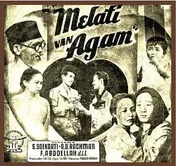 Melati van Agam was directed by Tan Tjoei Hock for Java Industrial Films and produced by the company's owner, The Teng Chun. Tan adapted the story from the 1922 novel of the same name by Swan Pen (a pseudonym of journalist Parada Harahap). The novel had already been adapted for the stage several times, and a silent film had been released in 1931 by Tan's Film.[2] Marketing emphasised Harahap's role as the original novelist; at the time, the film industry was attempting to push away from the theatrical traditions, and journalism was considered a "modern" profession.[3] The plot likewise contrasted traditional lifestyles and modern ones.[4]