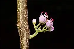 Melicope elleryana, commonly known as pink flowered doughwood, pink evodia, corkwood,[2] or saruwa,[3] is a species of rainforest shrub or tree in the family Rutaceae, and is native to New Guinea, parts of eastern Indonesia, the Solomon Islands and northern Australia. It has trifoliate leaves and pink to white, bisexual flowers arranged in panicles in leaf axils.