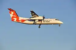 She now regularly flies a Dash 8 Combi-300, making tight landings on runways that are often just barely long enough for her aircraft.[1]