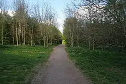 The park has a visitor centre, cafe, sensory garden, nature trail, climbing forest, memorial garden, stepping stones, bridges, bird hides, a dam, a troll bridge, sports grounds and cricket fields.[2] A parkrun takes place every week.[3] The park was given a Green Flag Award in 2018.[4]