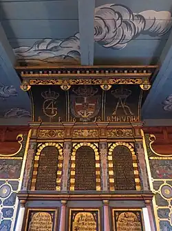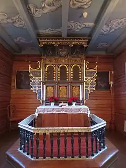 The new building was a wooden long church with a choir on the east end of the nave. The new church was consecrated on 24 October 1728. In 1737, Alstrup sold the church to Captain Christian von Barnholdt. In 1767, a tower was built on the church. In 1828, the Løvenskiold family purchased the church. In 1840, the old tower was removed and a new, larger tower was built on the west end of the nave. A church porch is located beneath the tower and that is used as the main entrance to the church. In 1854, the local municipality took ownership of the church which had been privately owned since 1723. In 1883, the pews were changed, and the church got new windows and a new baptismal sacristy. In 1897, the interior walls were paneled to cover up the log construction and the ceiling was changed. In 1970–1976 the interior was restored and the wall paneling was removed.[4]