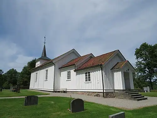 Melum Church (Norwegian: Melum kirke; historically: Mælum kirke) is a parish church of the Church of Norway in Skien Municipality in Telemark county, Norway. It is located in the village of Melum. It is the church for the Melum parish which is part of the Skien prosti (deanery) in the Diocese of Agder og Telemark. The white, wooden church was built in a long church design in 1728 using plans drawn up by an unknown architect. The church seats about 150 people.[1][2]
