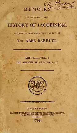 9. ^ Abbé Augustin Barruel, Memoirs Illustrating the History of Jacobinism, (Hartford: Hudson & Goodwin, 1799), Vol. 1, vii.