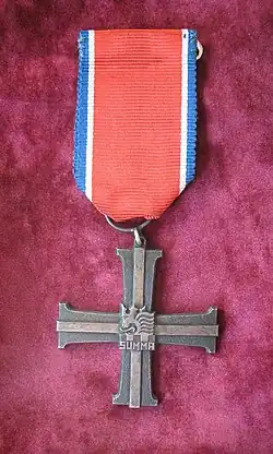 The Memorial Crosses (Muistoristi) are Finnish specific service medals of the Second World War, i.e. Winter War, Continuation War and Lapland War.[1] They are official awards of Finland and shall be worn after the other official awards in chronological order, however preceding later campaign medals (e.g. different United Nations Medals) and other generic awards for patriotic duty.[2]