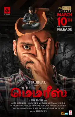 Memories is 2023 Indian Tamil-language action thriller film written and directed by Syam and Praveen, and produced by Shiju Thameens under, Shiju Thameen's Film Factory PVT LTD. It features Vetri, Parvathy Arun, Dayyana, and Ramesh Thilak in the lead roles with R. N. R. Manohar, Hareesh Peradi, Sajil, Srikumar, Salildas playing the pivotal roles.[1] The film was released on 10 March 2023.