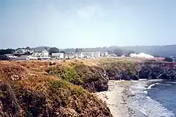 View of Mendocino from the northwest, with the Mendocino Music Festival tent to the right