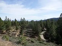 The infamous Rattlesnake Fire occurred here in 1953. One Forest Service employee and 14 volunteer firefighters perished. The circumstances of the tragedy resulted in major changes in firefighting strategy and training.[8] The firefighters are memorialized at the Rattlesnake Fire Memorial overlooking Rattlesnake Canyon. Access to it can be found off of Forest Highway 7 on County Road 307/Alder Springs Road.
