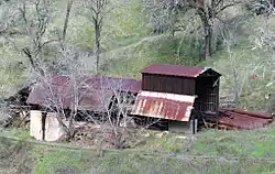 Mercuryville was founded in 1874,[1] after cinnabar, a mercury-bearing ore, was discovered in eastern Sonoma County around 1870. Mercury is a dense liquid metal that can be used to separate gold from other less dense materials. The California Gold Rush, which had begun only 20 years earlier, increased the demand and price of mercury to $1 a pound—approximately $20 in 2018 dollars—making ore extraction profitable and prompting a short-lived mercury rush in the 1870s. When the price of ore dropped within a few years, most mines were quickly abandoned.[2] In its heyday, the town had eight bars that were notorious for fights, and a single church. Mercury was also mined in other areas of Sonoma County at the time, including mines near Guerneville.