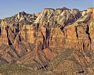 Meridian Tower is a 7,340-foot (2,240 m) Navajo Sandstone mountain in Zion National Park in Washington County, Utah, United States,[2] that is part of the Towers of the Virgin