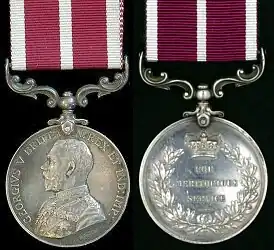 The Meritorious Service Medal is a British medal awarded to Senior Non Commissioned Officers and Warrant Officers of the British armed forces for long and meritorious service. From 1916 to 1928, eligibility was extended to cover both valuable services by selected other ranks irrespective of length of service, and for gallantry not in the face of the enemy.[2]