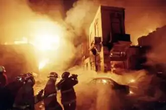 The fire began at about 7:30 p.m. on the night of 29 December when a fireworks display created a chain reaction, setting off the fireworks of other nearby vendors.[4] A spark from the demonstration had landed on a stockpile of fireworks, creating the initial explosion.[5] The aftermath created a "wall of fire" that spread for four blocks and raged for several hours.[4]
