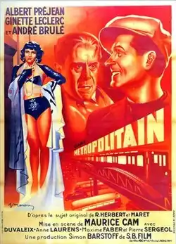 Metropolitan (French: Métropolitain) is a 1939 French thriller film directed by Maurice Cam and starring Albert Préjean, Ginette Leclerc and André Brulé.[1][2] It was shot at the Photosonor Studios in Courbevoie on the outskirts of Paris and on location around the city. The film's sets were designed by the art director Roland Quignon. The film was remade in Britain the following year as A Window in London with the setting moved to the London Underground.[3]