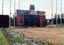The Vikings played their last game on December 20, 1981, dropping a 10–6 decision to the Kansas City Chiefs.[34] By this time, the Vikings had been eliminated from playoff contention. Knowing that fans would be more determined to claim souvenirs at what would almost certainly be the Met’s last major event, the Vikings tripled their security force for the contest.[25] In the game's final minutes, many of the 41,110 fans in attendance began dismantling seats and bleachers, and thousands stormed the field once the game ended.[25] The goal posts were torn down, pieces of the field were dug up, and speakers and lightbulbs on the scoreboard were removed.[25] Hundreds of injuries were reported, mostly minor scrapes and bruises but also multiple head injuries sustained during the melee.[35]
