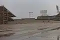 The Met was often considered less than ideal for football. The gridiron ran from around third base to right field (north-south), with barely enough room to fit the playing field and end zones. Wooden bleachers were brought onto the field during football season to bring fans closer to the game.[8] For 1965, a large double-decked grandstand was installed in left field to replace the temporary wooden bleachers. The Vikings actually paid for this new grandstand in return for reduced rent;[11] this location was prime sideline seating in the football configuration. This left the Met with the unique configuration of a double deck in left field, and bleachers behind third base. The left-field grandstand was originally planned to be capable of sliding toward or away from the gridiron (as Denver's Mile High Stadium later would be), but that part of the project was never realized.