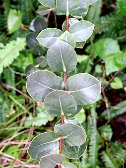 Metrosideros nervulosa, commonly known as the mountain rose, is a species of flowering plant in the family Myrtaceae. It is endemic to Lord Howe Island in the Tasman Sea, part of the Australian state of New South Wales. It occurs in shrubland or low forest, mainly at altitudes of 300–875 m on the main peaks of the island.[1] It prefers sunny positions on exposed ridges or in the forest canopy.[2]
