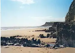 Mewslade Bay is a small sandy beach facing SSW in the west of the Gower Peninsula, Wales. It lies south of Middleton and southwest of Pitton, from which footpaths lead to the beach.[1]