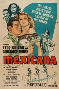 Mexicana is a 1945 American musical film directed by Alfred Santell and starring Tito Guízar, Constance Moore and Leo Carrillo. The film was one of three made by Republic Pictures in line with the American government's Good Neighbor policy towards Latin America. Its plot is almost identical to that of another Guízar vehicle Brazil (1944).[1]