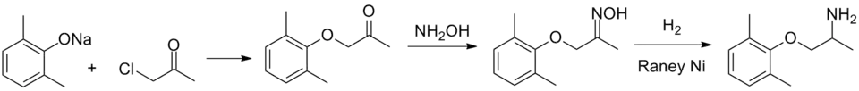 - ^ US 3954872, Koppe R, Kummer W, "1-(2{40 ,6{40 -Dimethyl-phenoxy)-2-amino-alkanes and salts thereof", issued 1976, assigned to Boehringer Sohn Ingelheim.