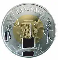 Depiction of an engraved mammoth ivory bracelet from Mezine on a Ukrainian coin