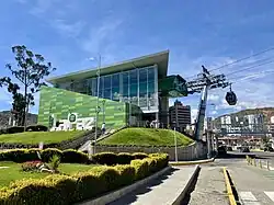 Mi Teleférico (Spanish pronunciation: [mi teleˈfeɾiko], English: My Cable Car), also known as Teleférico La Paz–El Alto (La Paz–El Alto Cable Car), is an aerial cable car urban transit system serving the La Paz–El Alto metropolitan area in Bolivia.[5] As of October 2019, the system consists of 26 stations (36 if transfer stations are counted separately per line) along ten lines: Red, Yellow, Green, Blue, Orange, White, Sky Blue, Purple, Brown, and Silver. Further lines and extensions are in planning or construction.[2]