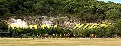 Burleigh State High School opened on 1 January 1963. It was subsequently renamed South Coast District State High School and then to Miami State High School.[14][15] Because there was a visible rock face remaining from an earlier quarry, the school principal William Callinan covered it up with a set of huge yellow letters saying "HI MIAMI HIGH". It now says just "MIAMI HIGH".[16][17]