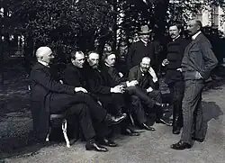 In November 1915, conflicts over the distribution of refugee aid led to divisions within the Citizens’ Committee. Lithuanians left the committee. The Germans took over the distribution of external aid, and limited the committee's activities to the city itself. This practically deprived it of its significance, as it was intended to represent the community of Kaunas and Vilnius governorates.[99] Committee was formally disbanded on 26 January 1916.[100] In its place, the Polish Committee was established in December 1916, with Michał Węsławski as its chairman and Władysław Zawadzki as his deputy. Within the committee, divisions were strong between the nationalist Endecja and the more liberal-minded Krajowcy group. Increasing German repression, the curtailment of Polish education, and the promotion of other nationality groups, gave the former an advantage.[101]