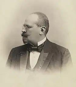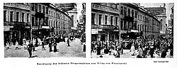 29 October saw the shooting of Governor Konstantin von Pahlen at a General Jewish Labour Bund rally; in response, police and Cossacks began firing into the crowd; 40 people were wounded, five died, including three on the spot. The next day there was a general strike in the city. The so-called October Manifesto, issued on 30 October, failed to calm the situation in the city, and there were further riots and casualties.[43] A group of councilors, including Węsławski, organized a people's assembly on 2 November, at which representatives of most of the city's population groups showed up. Adolf Zmaczynski was appointed chairman, and speeches were made in national languages, demanding punishment of the guilty, the appointment of the city militia and the withdrawal of troops. The city council undertook to carry out these demands, but they were blocked by the central administration.[44] The October Manifesto introduced freedom of language, therefore the councilors submitted a request to the governor for the use of Polish during the swearing-in, as well as in the ongoing work of the magistrate and the introduction of bilingual signs on municipal buildings and with street names.[45] This request was later rejected.[46] Michał Węsławski finally took office on 2 December 1905, with Mieczysław Malinowski as his elected deputy. It was a significant event, since until then it had been impossible for a Pole to run a governorate city.[45]