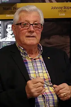 Michael Arthur Cleary AO (born 30 April 1940) is an Australian former rugby union and rugby league footballer of the 1950s, 1960s and 1970s, and a politician. He represented Australia in both rugby codes as well as in athletics making him one of only four Australians who have represented their country at full international level in three different sports.[2] He represented as a Wallaby in six Tests in 1961 and as a Kangaroo in eight Tests from 1962.