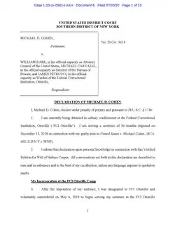 217. ^ Neumeister, Larry (July 23, 2020). "Judge orders Michael Cohen to be released from prison". AP News. Archived from the original on January 25, 2021. Retrieved July 24, 2020.